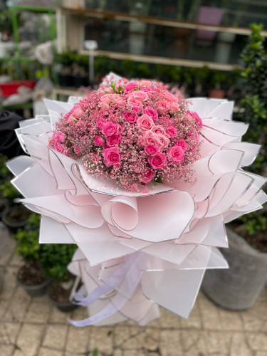 دسته گل رز مینیاتوری و ژیپسوفیلا فلوبار