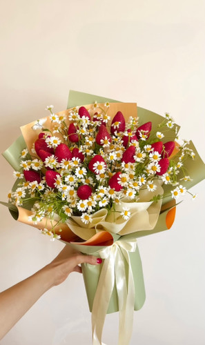 دسته گل داودی کرزنتیا و توت فرنگی فلوبار