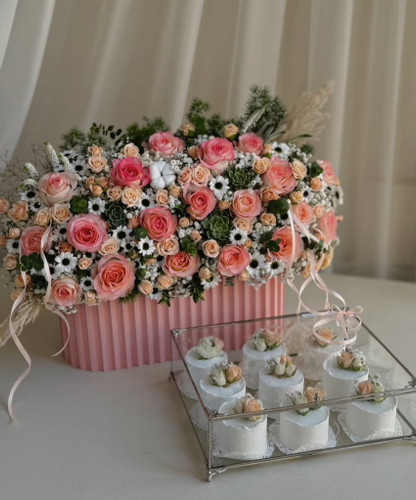 دسته گل و کاپ کیک خواستگاری فلوبار