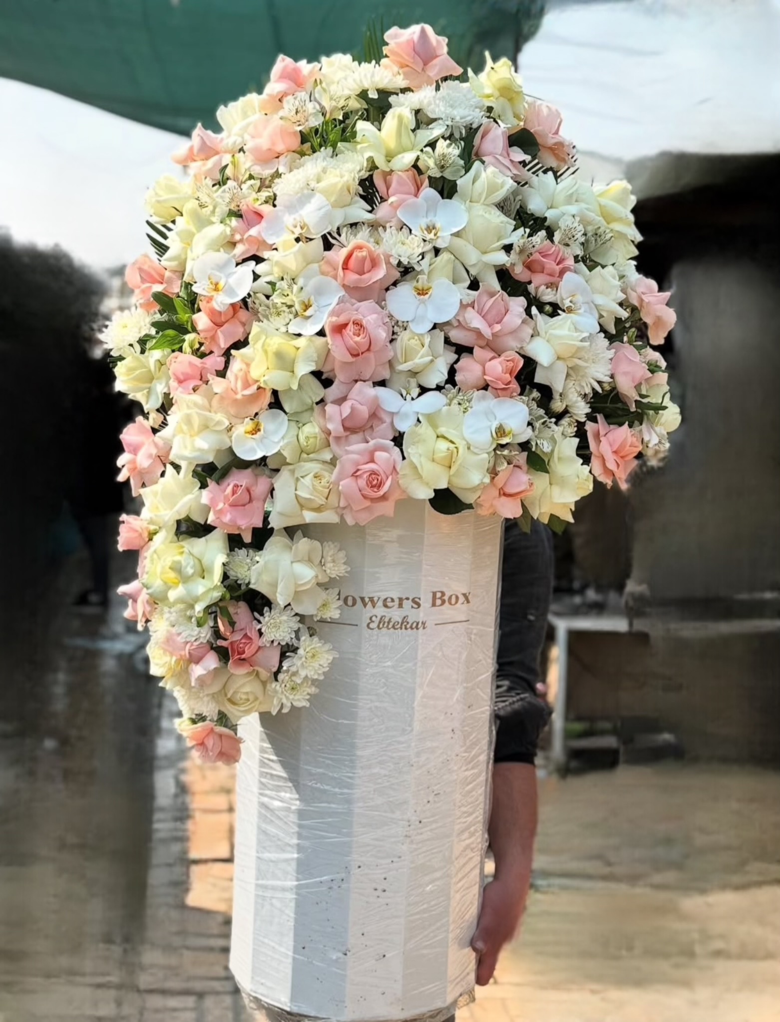 باکس گل غول پیکر رز و ارکیده سفید فلوبار