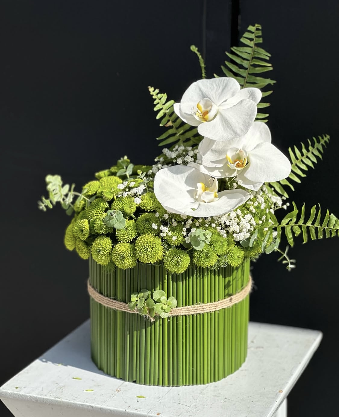 باکس گل رز و ارکیده سفید سبز فلوبار