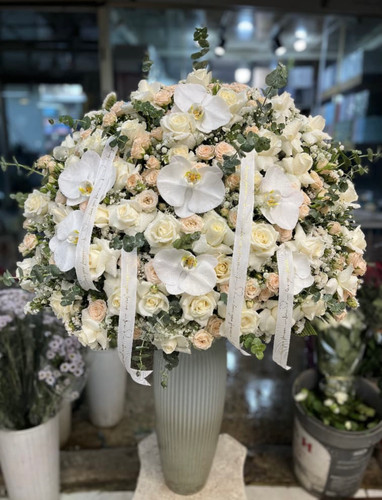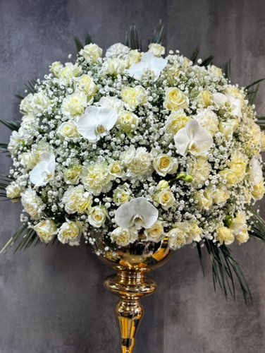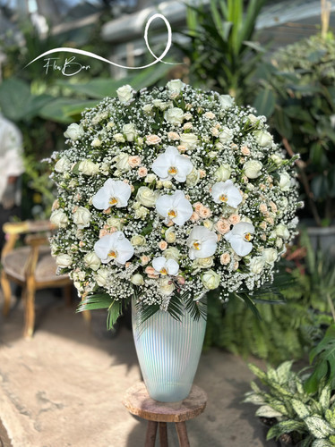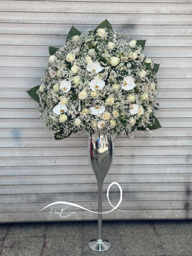 جام گل بله برون با گل مصنوعی رز سفید فلوبار