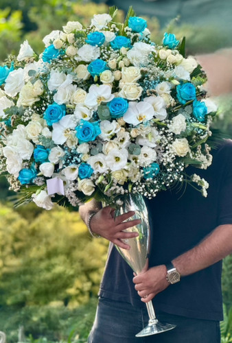 جام گل بله برون با گل مصنوعی آبی ملیح فلوبار