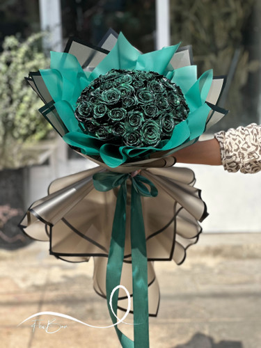 دسته گل ۶۰ شاخه رز سبز شاین دار یا اکلیلی فلوبار