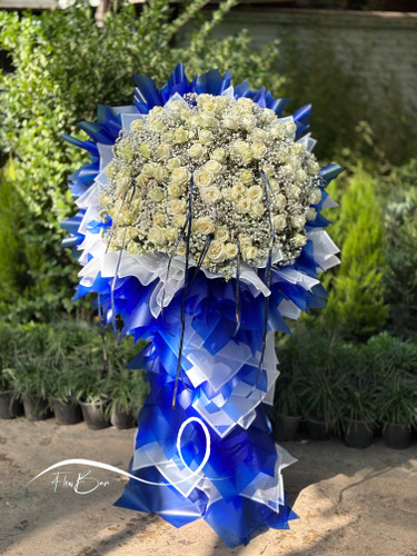 دسته گل ۶۰ شاخه رز سفید فلوبار