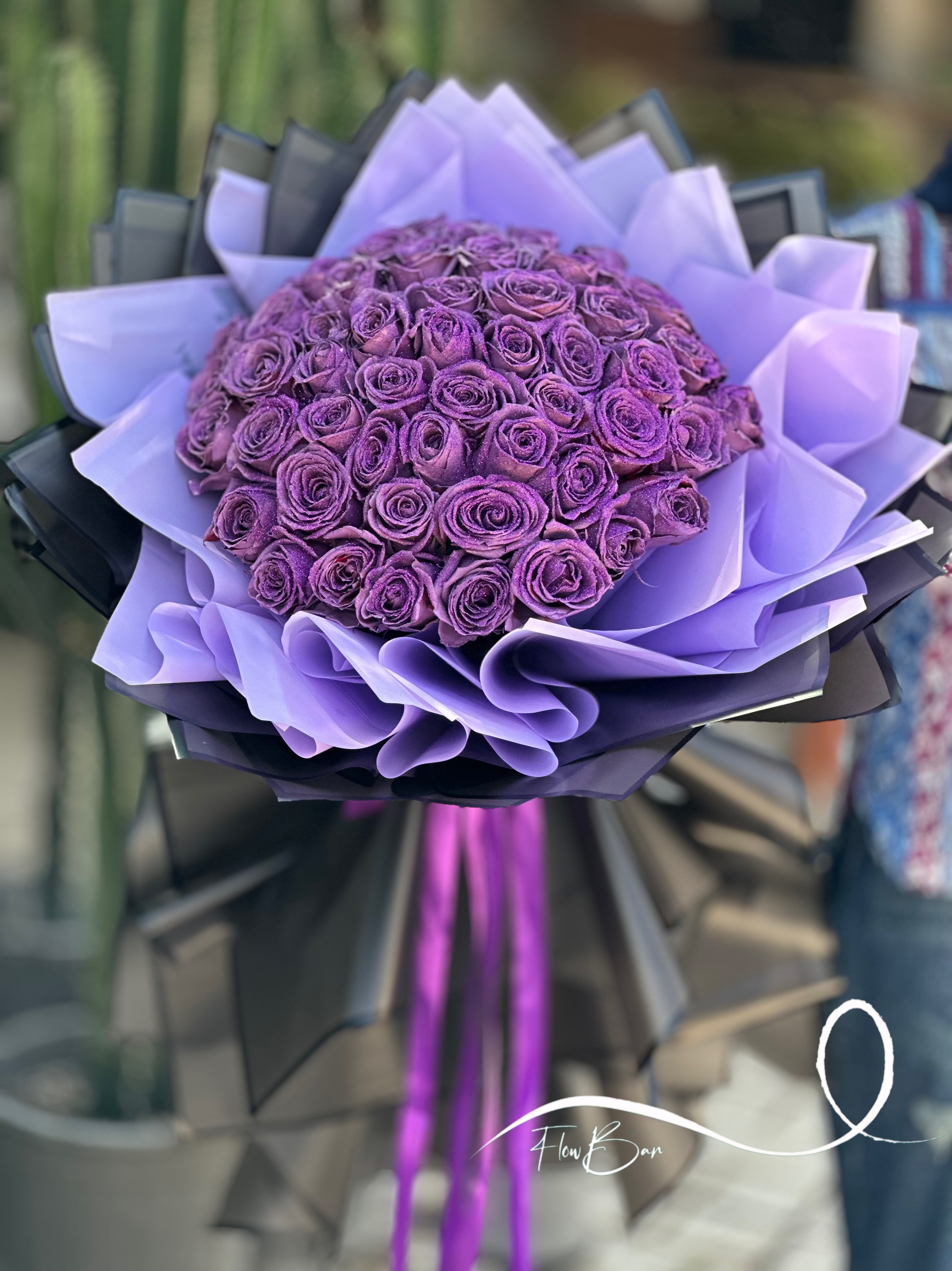 دسته گل ۶۰ شاخه رز بنفش شاین دار یا اکلیلی فلوبار