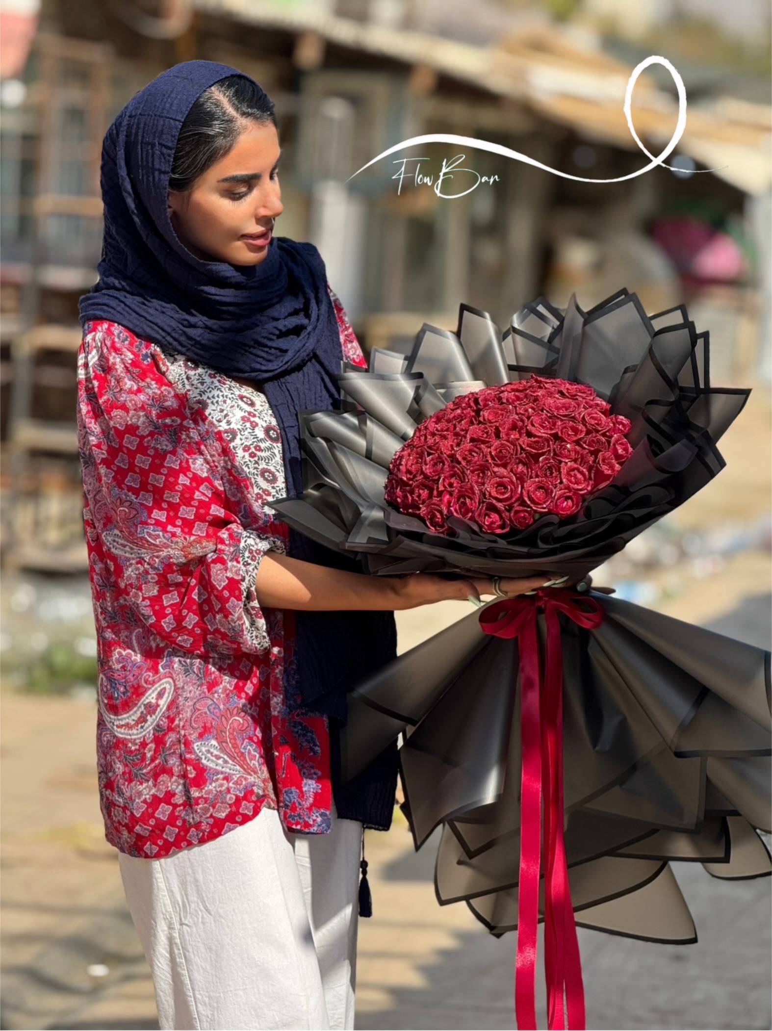 دسته گل ۱۰۰ شاخه رز ایرانی فلوبار