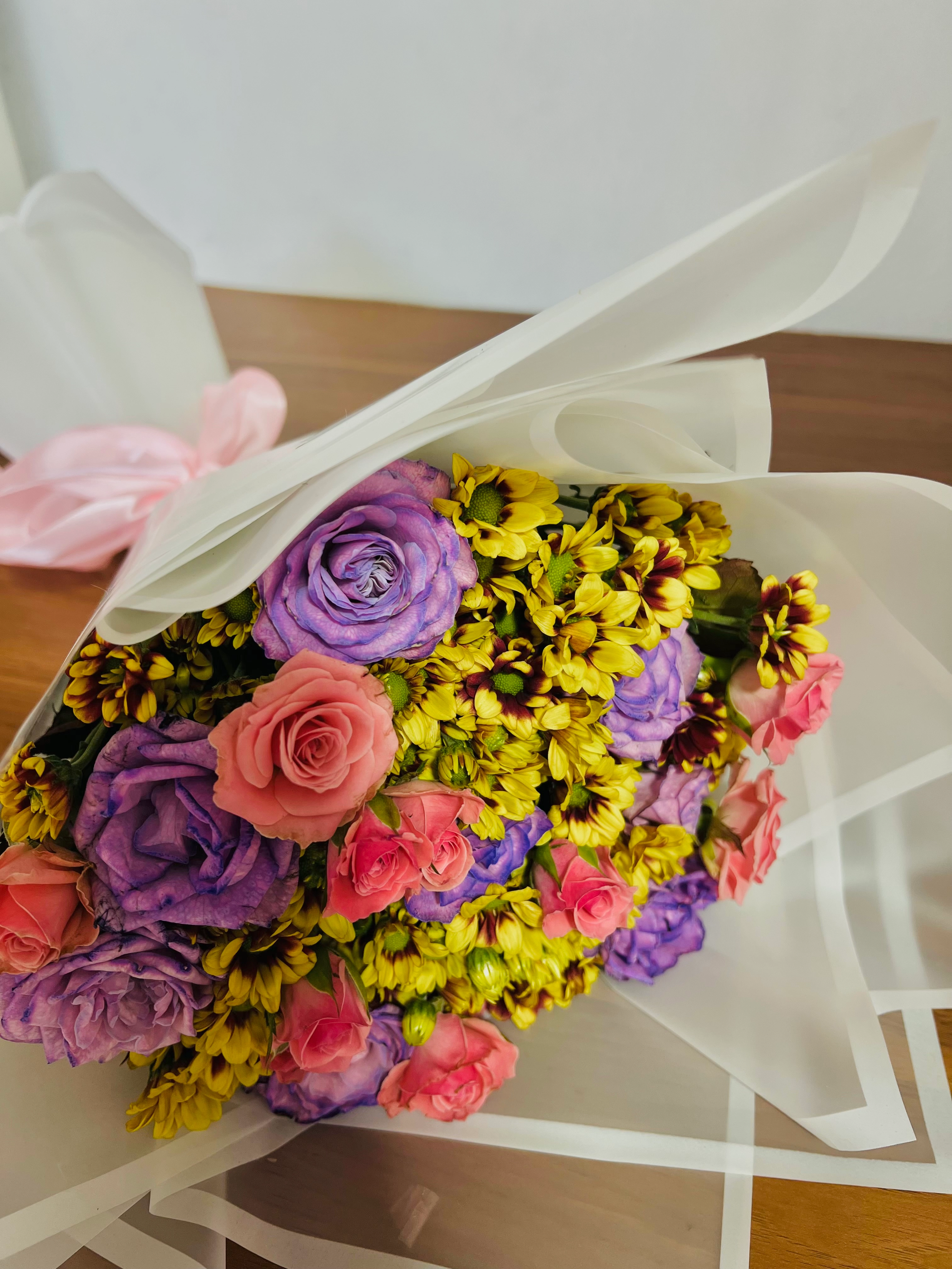دسته گل رز مینیاتوری و آلسترومریا فلوبار