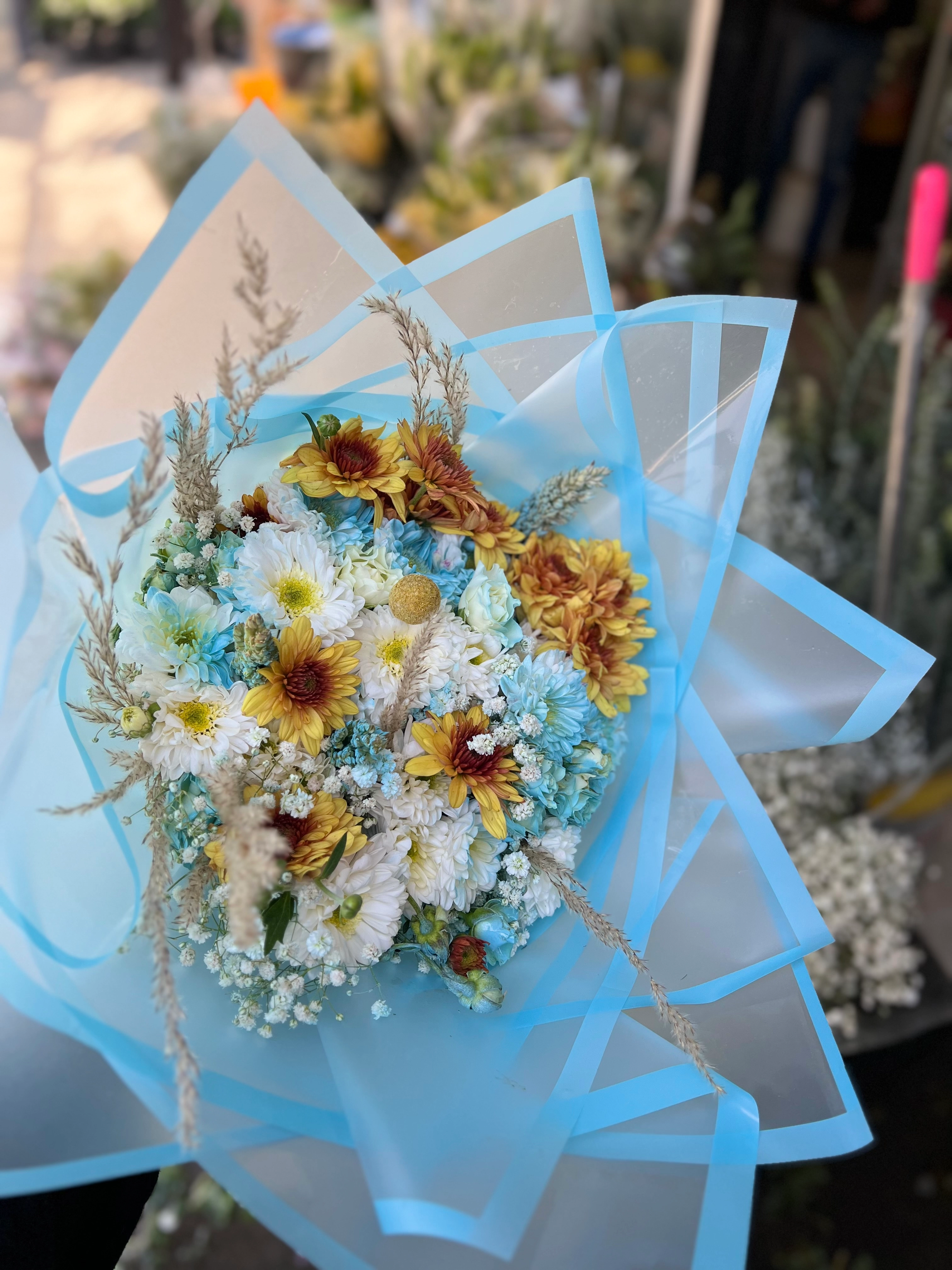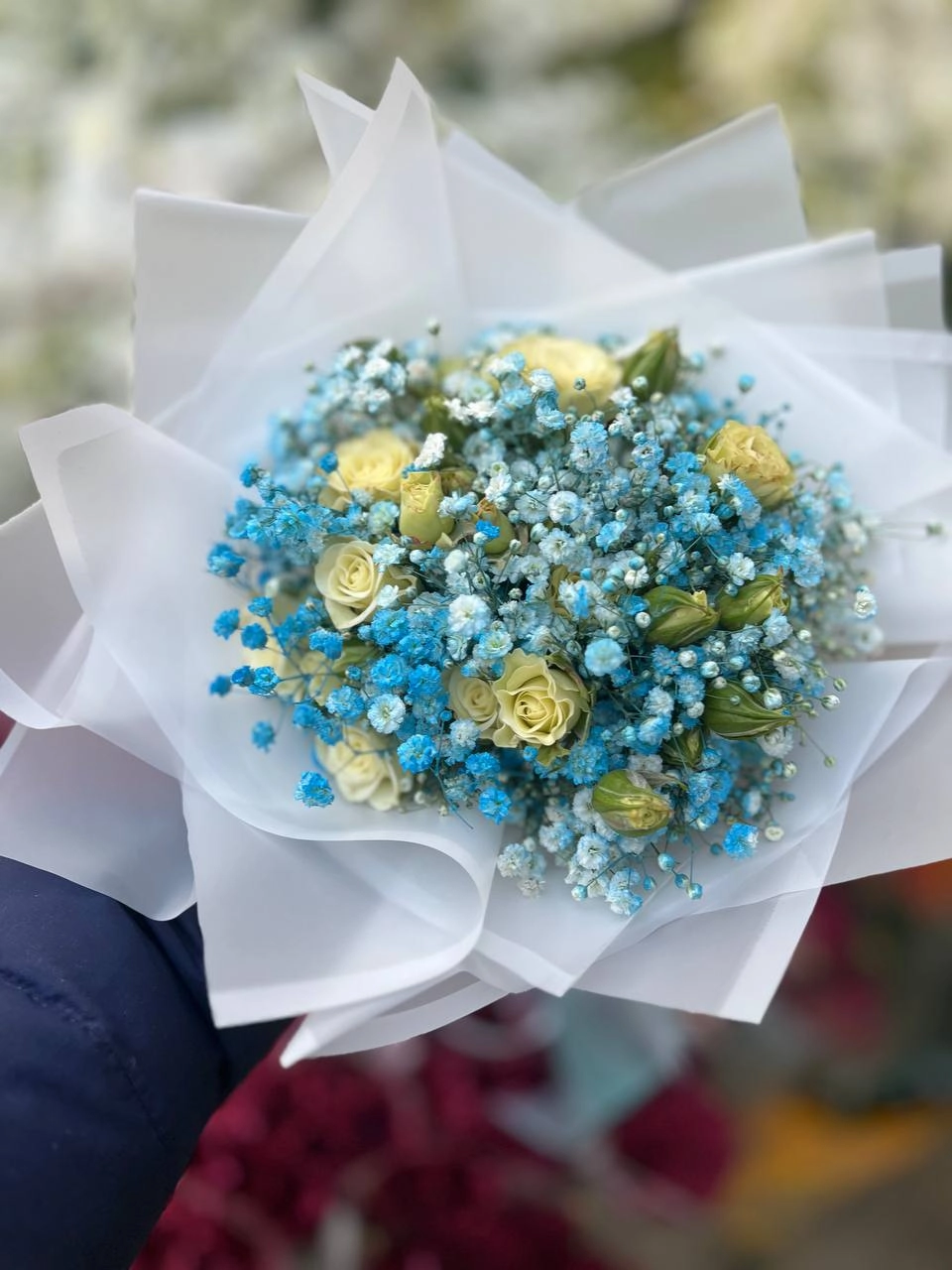 دسته گل رز آبی و ژیپسوفیلا فلوبار