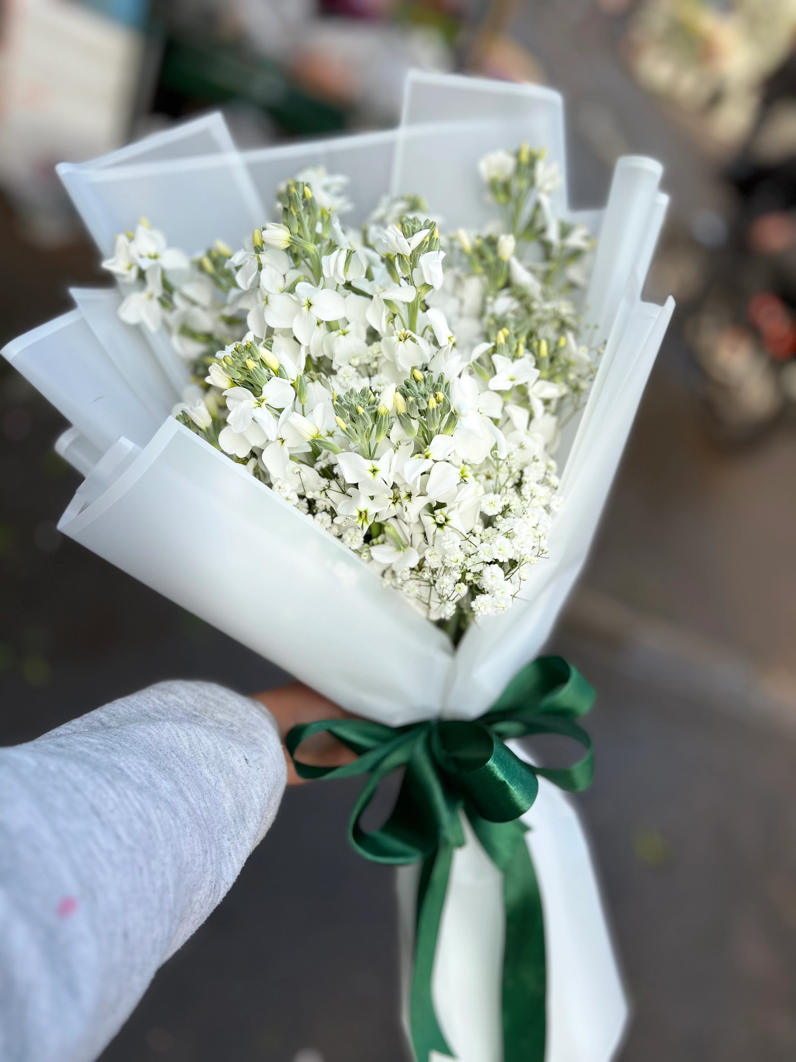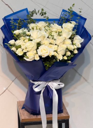 دسته گل ۲۰ شاخه رز سفید فلوبار