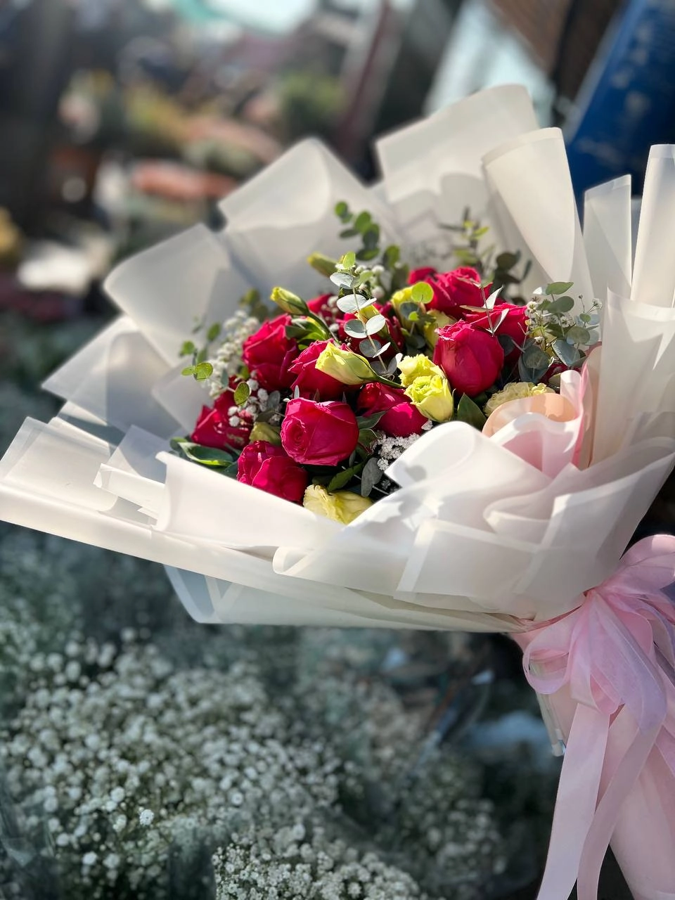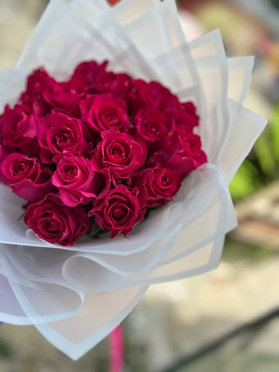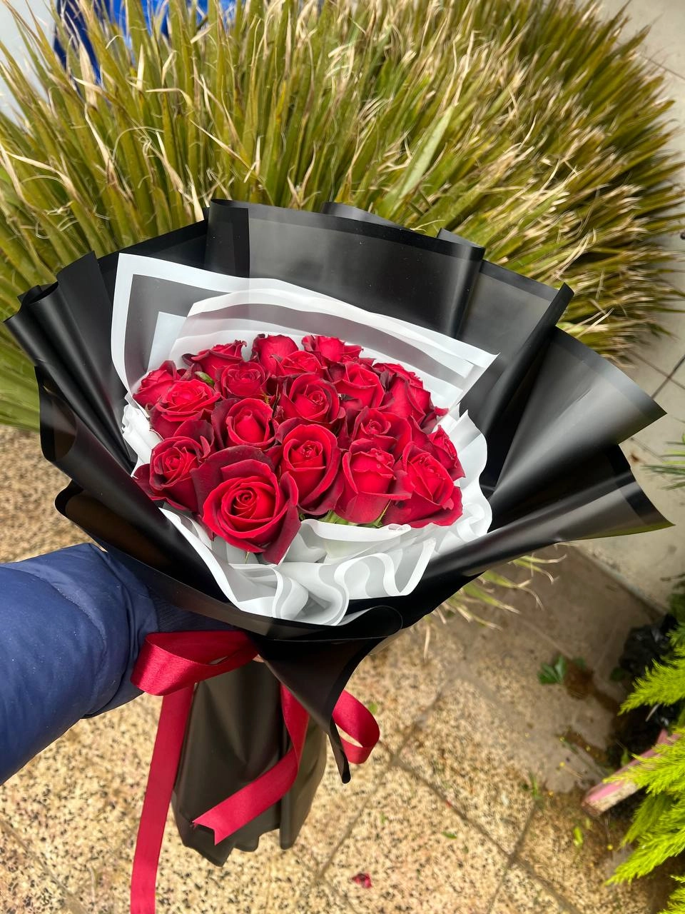 دسته گل ۲۰ شاخه رز قرمز فلوبار