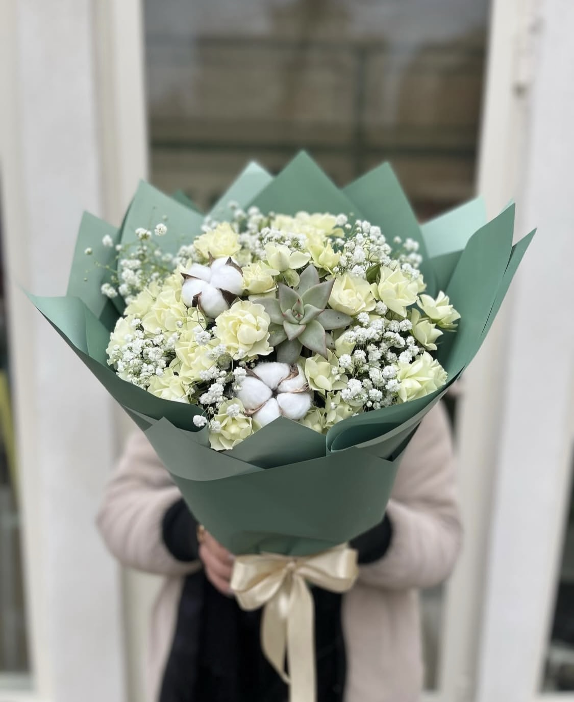 دسته گل رز مینیاتوری و ژیپسوفیلا فلوبار