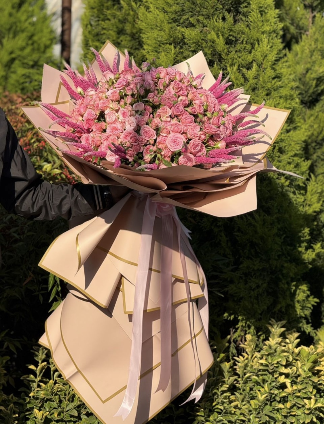 دسته گل ۴۰ شاخه رز صورتی فلوبار