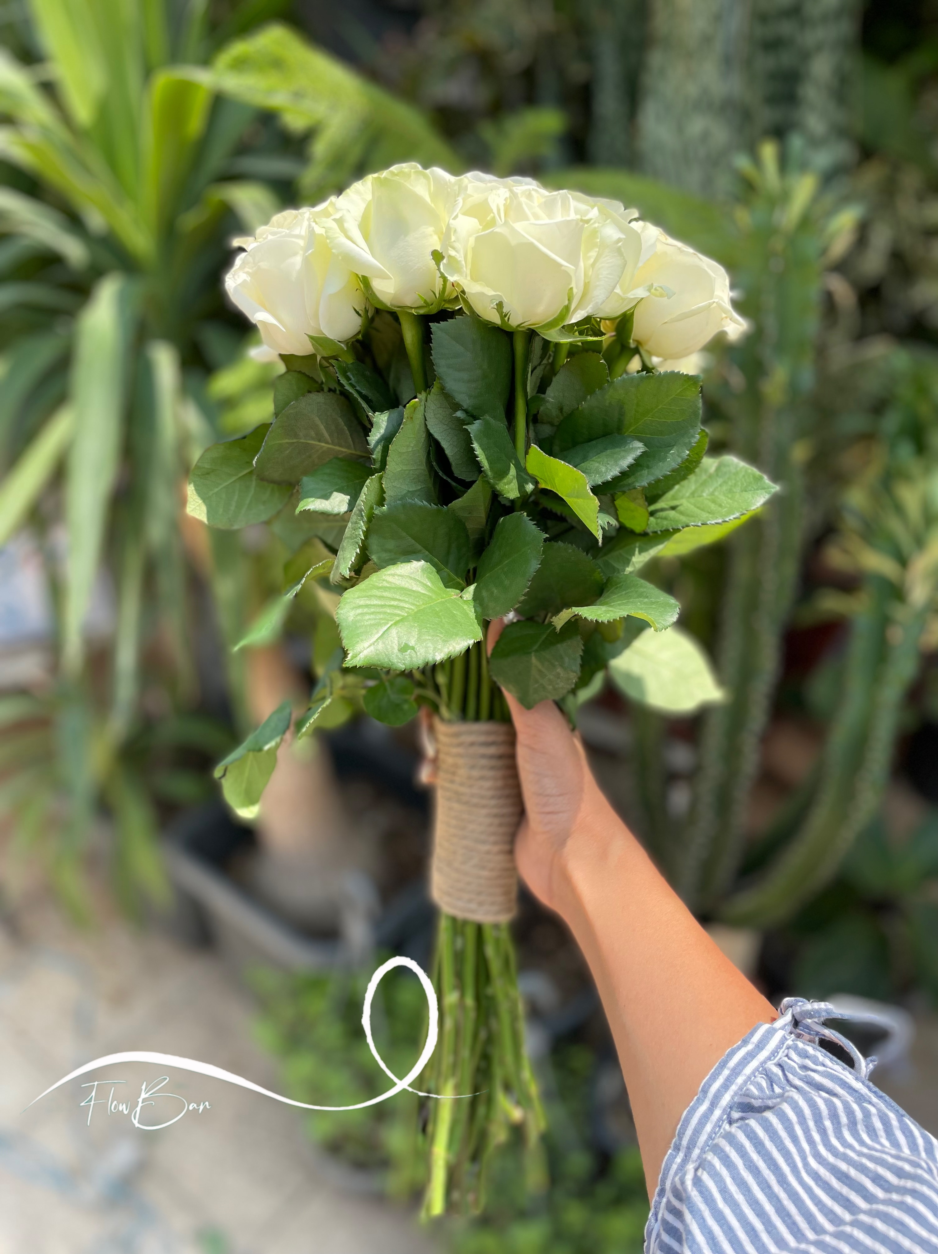 دسته گل ۲۰ شاخه رز سفید فلوبار