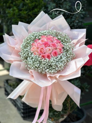 دسته گل ۲۰ شاخه رز سرخابی فلوبار