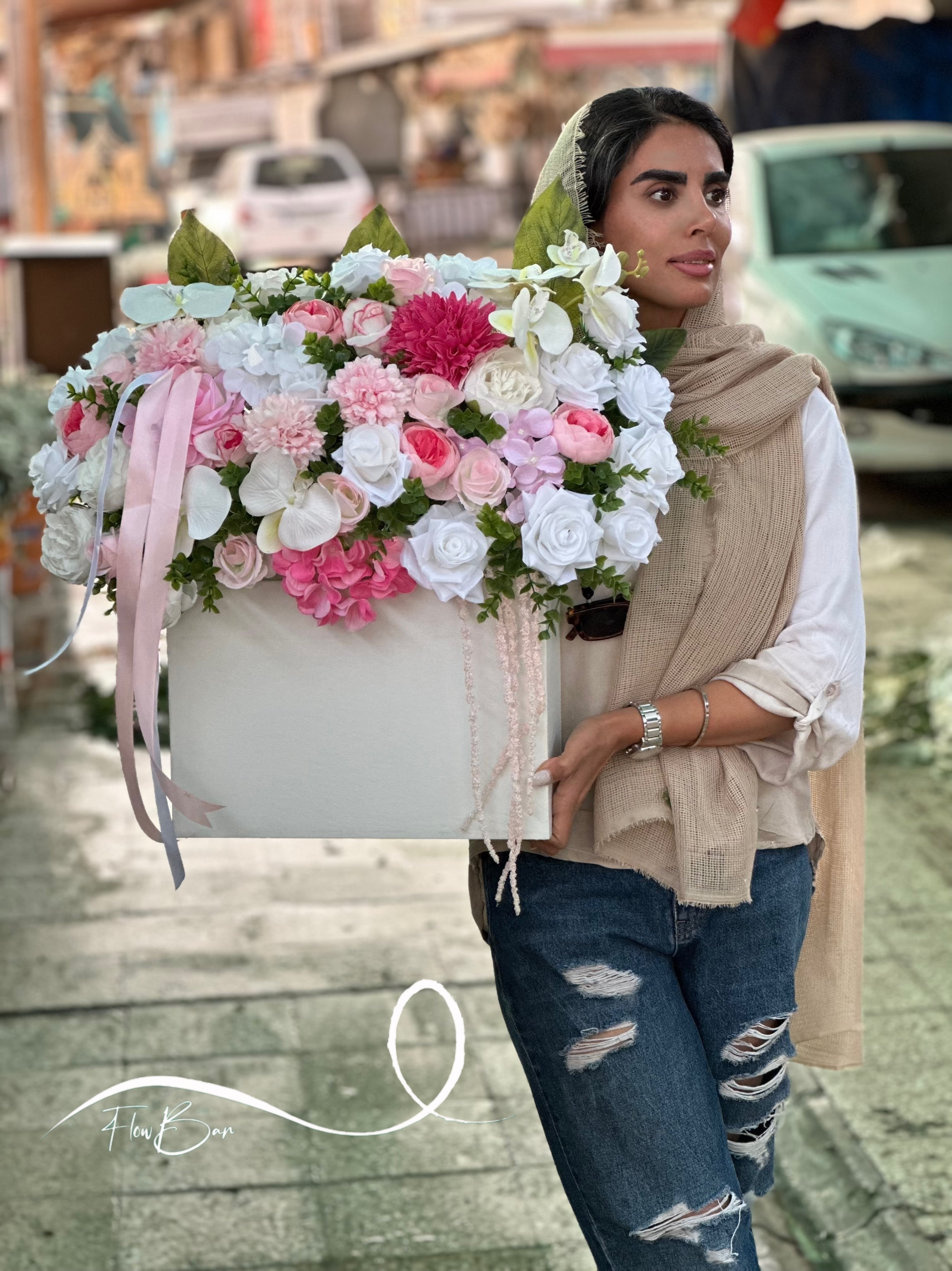 دسته گل عروس با گل اورینتال مصنوعی فلوبار