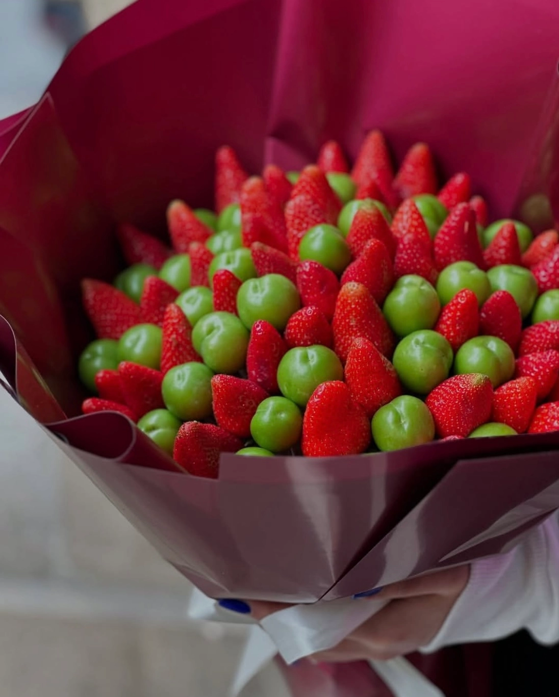 دسته گل گوجه سبز و توت فرنگی فلوبار