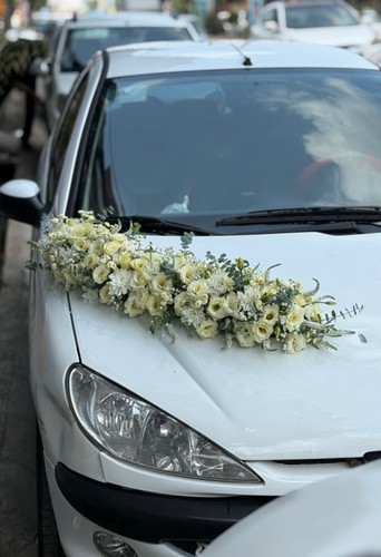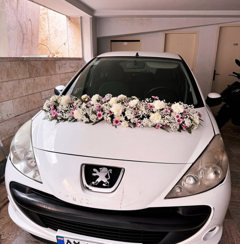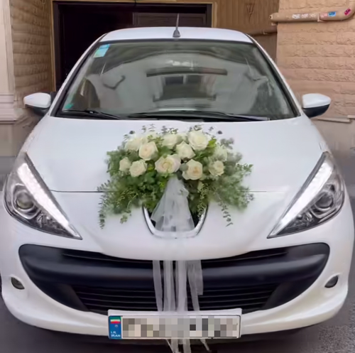گل آرایی ماشین عروس ال ۹۰ سفید فلوبار