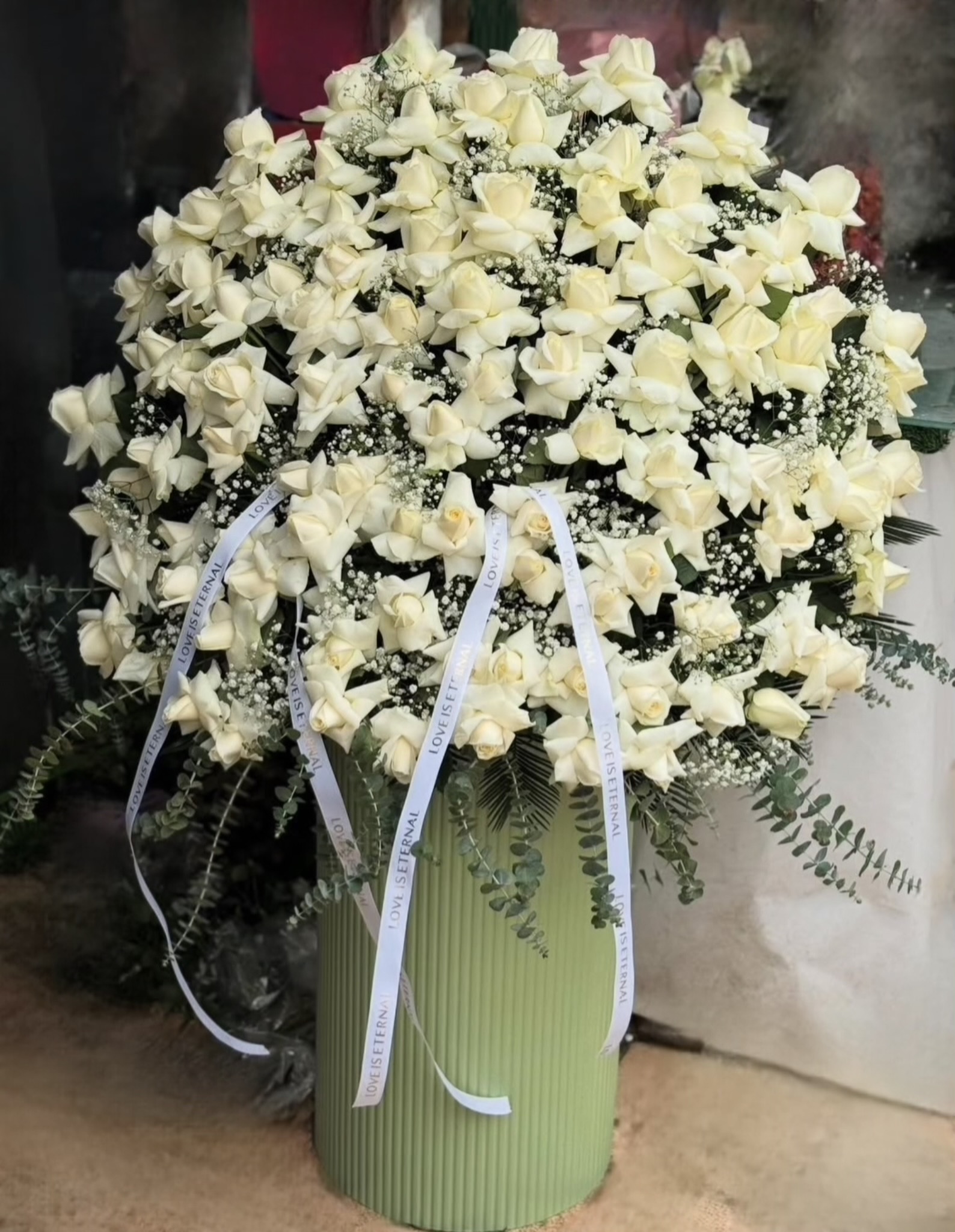 دسته گل ۴۰ شاخه رز سفید فلوبار