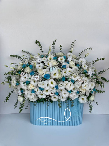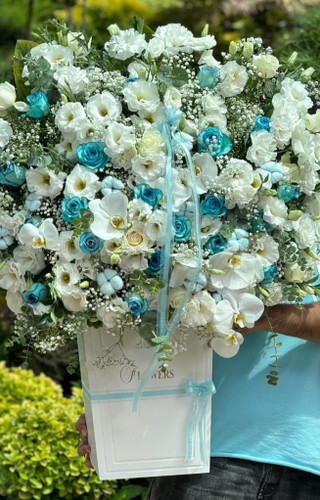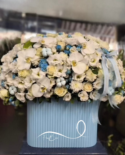 باکس گل رز و ارکیده سفید آبی فلوبار
