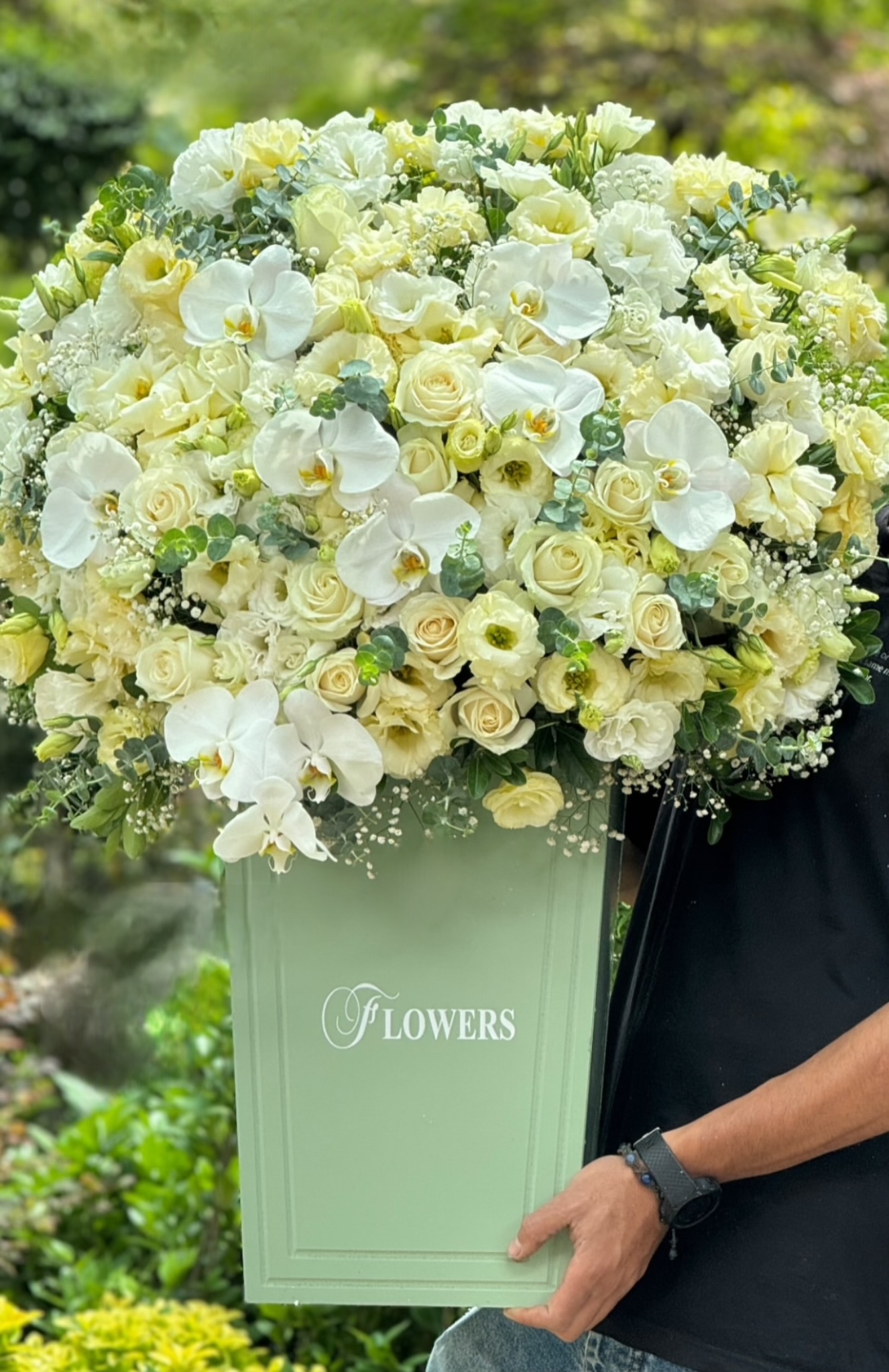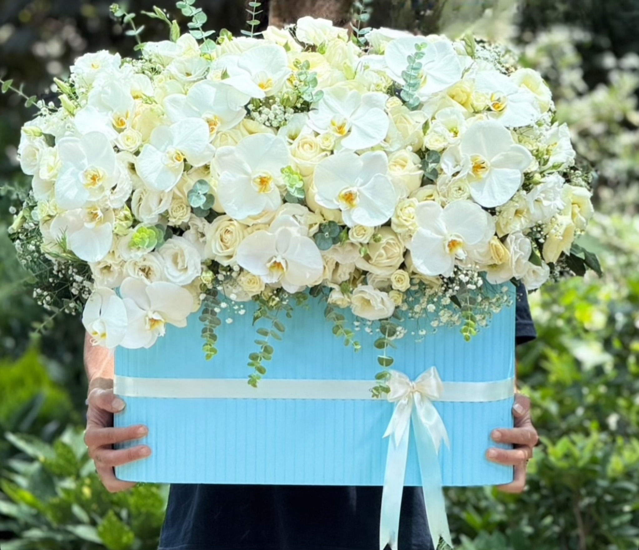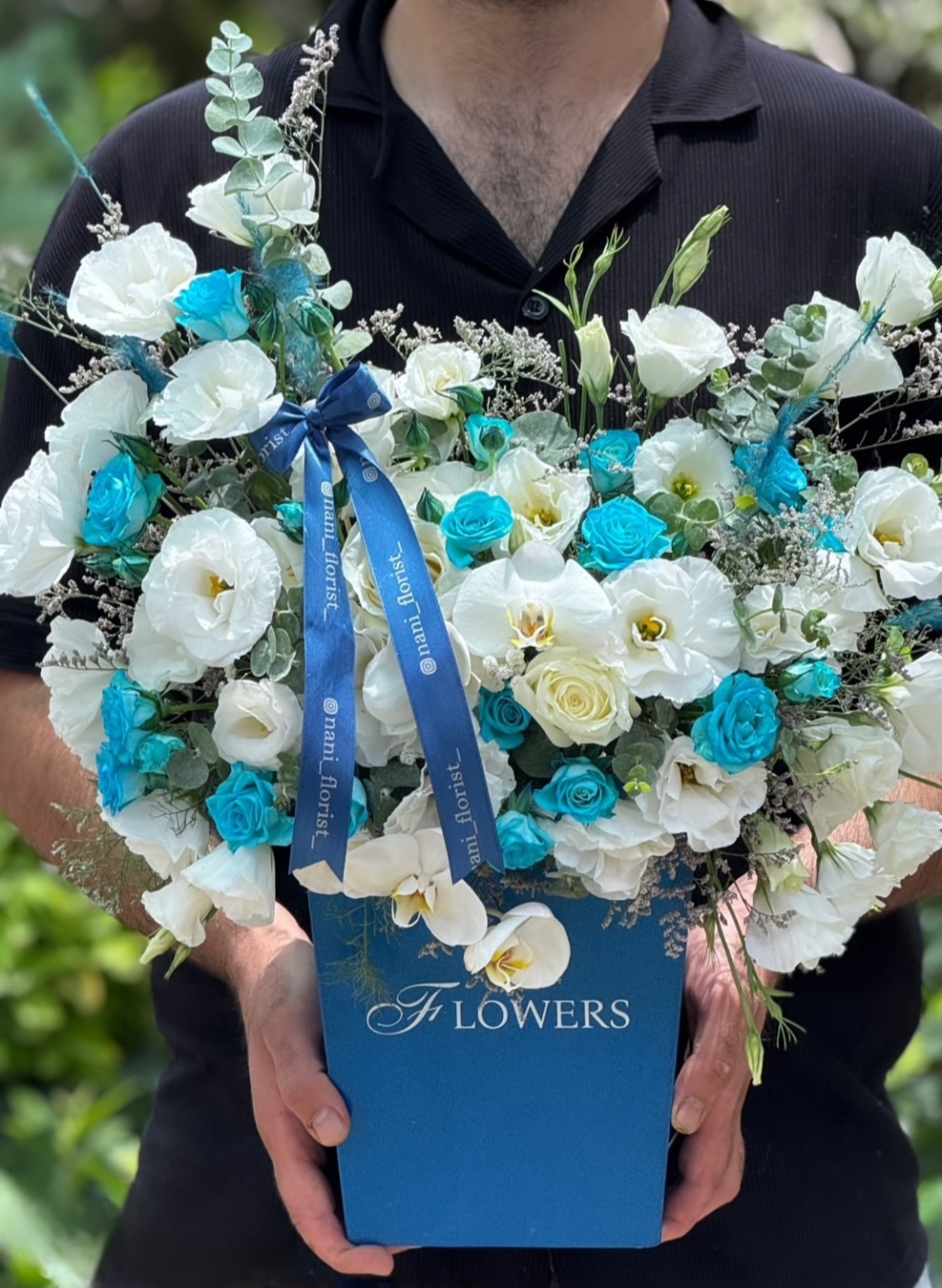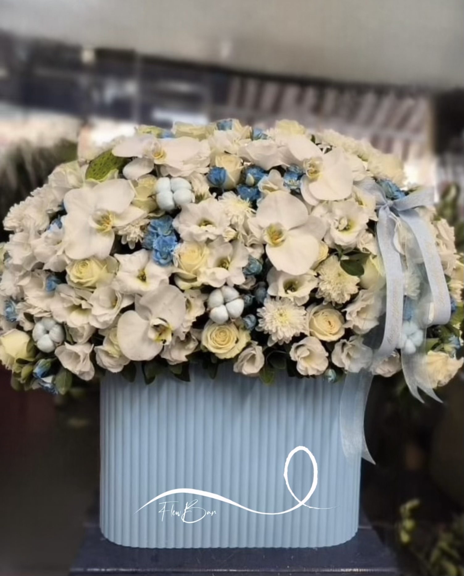 باکس گل رز و ارکیده سفید آبی فلوبار
