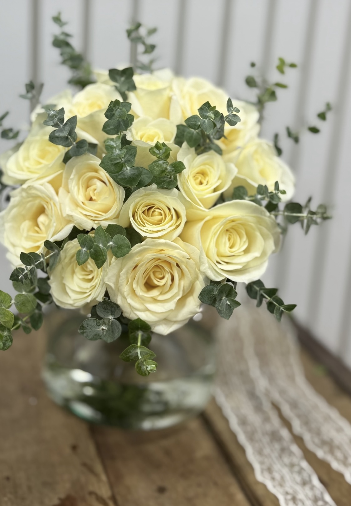 باکس گل غول پیکر رز سفید و اکالیپتوس فلوبار