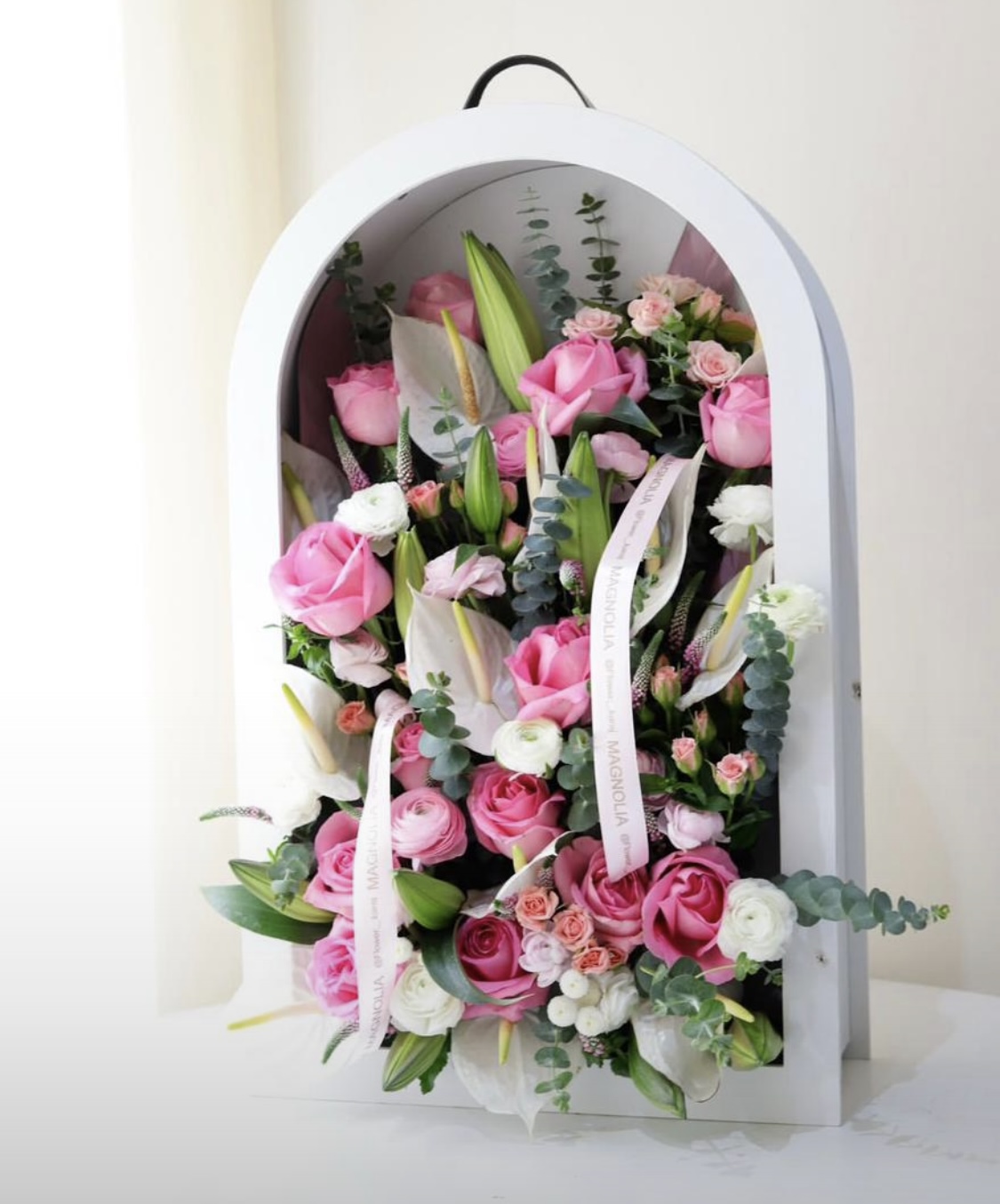 باکس گل دو طبقه سفید صورتی خواستگاری فلوبار