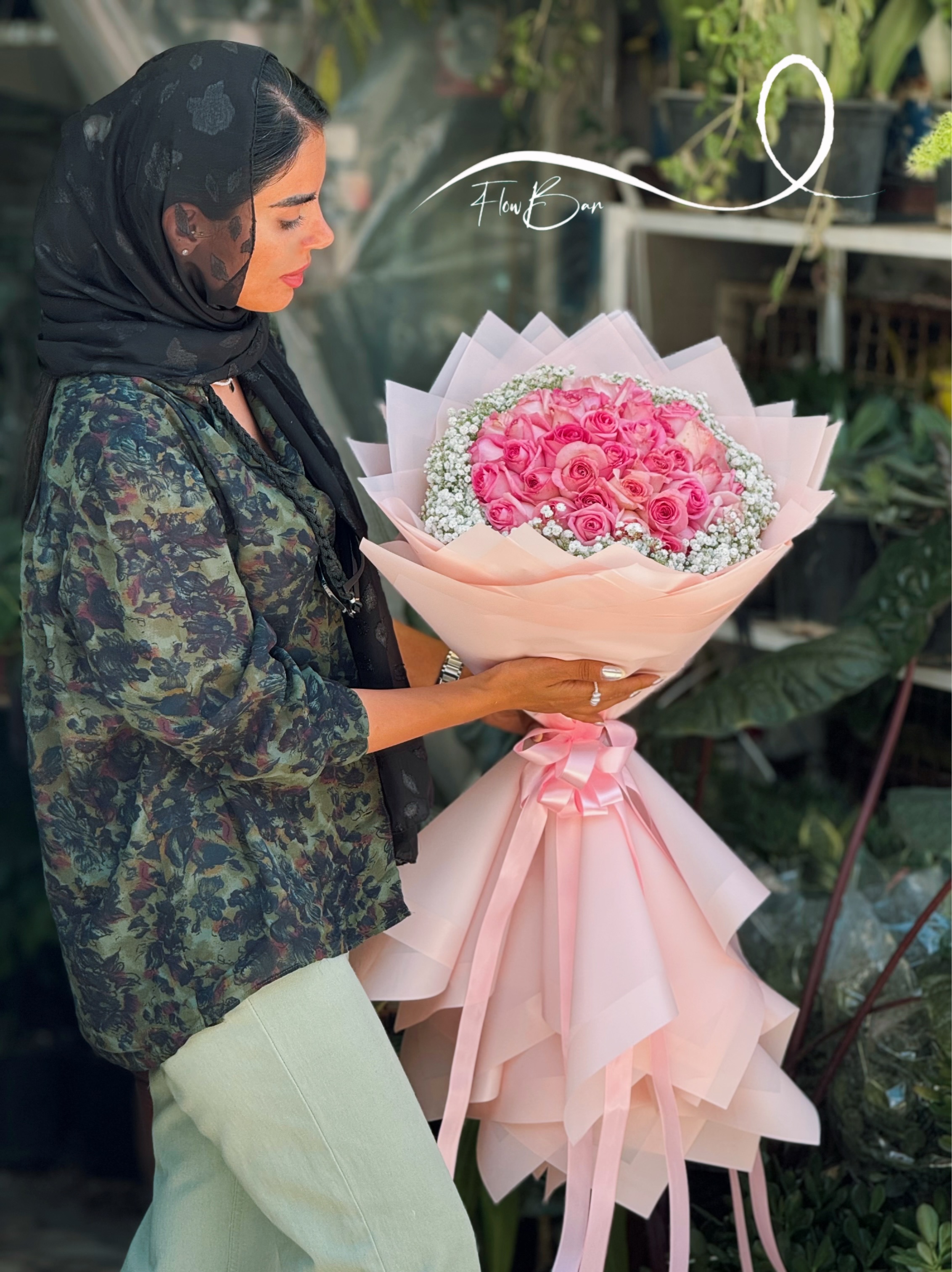 گل رز صورتی داخل باکس گل کتابی فلوبار