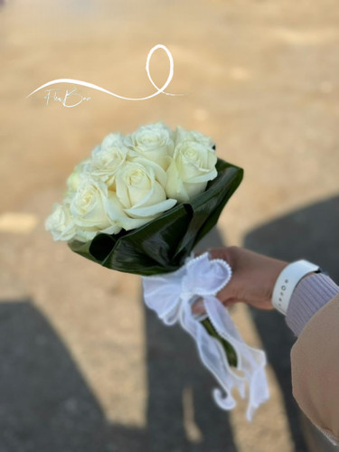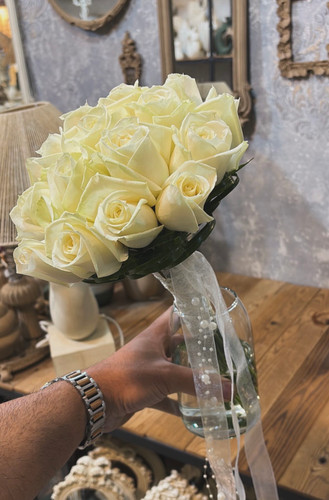 دسته گل عروس با رز سفید فلوبار